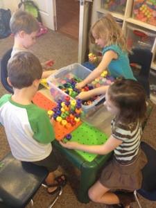 We talked about how they were different from the eggs we buy at the grocery store. The kids discovered that they were smaller, brownish colored and had speckles/spots!